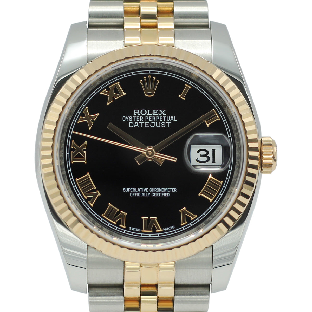 Rolex Datejust 36 116231 Black Roman Numeral Dial Jubilee Bracelet Steel Rose Gold